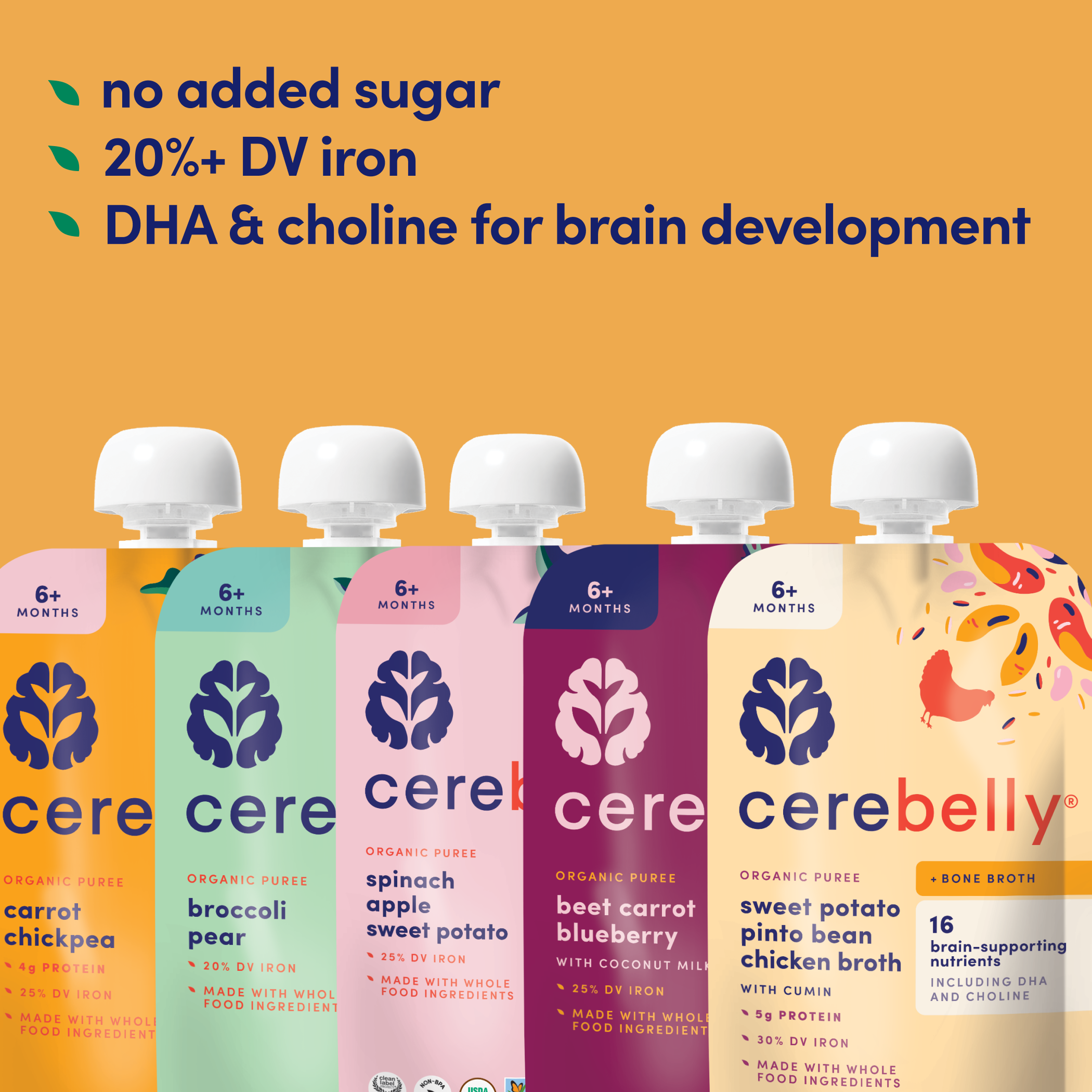 The First Bites Personalized Bundle fuels early growth with veggies, beans, and fruits—plus bone broth or plant-powered proteins—to support vision, memory, and learning.