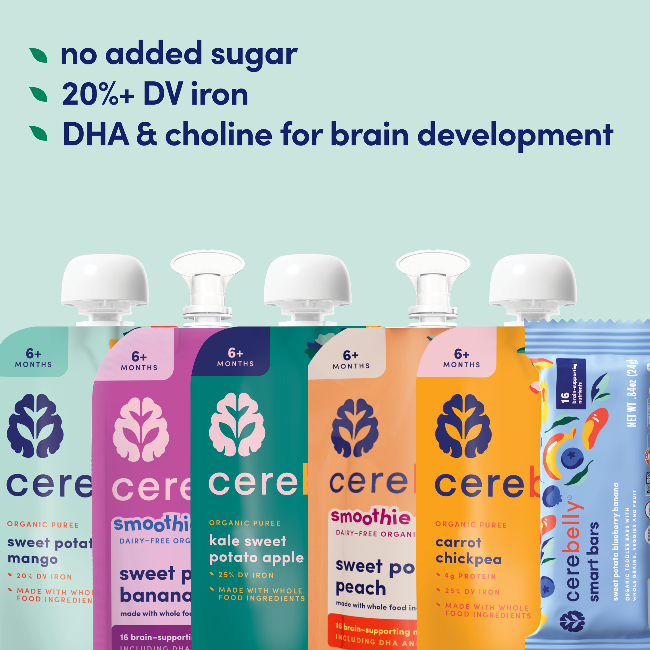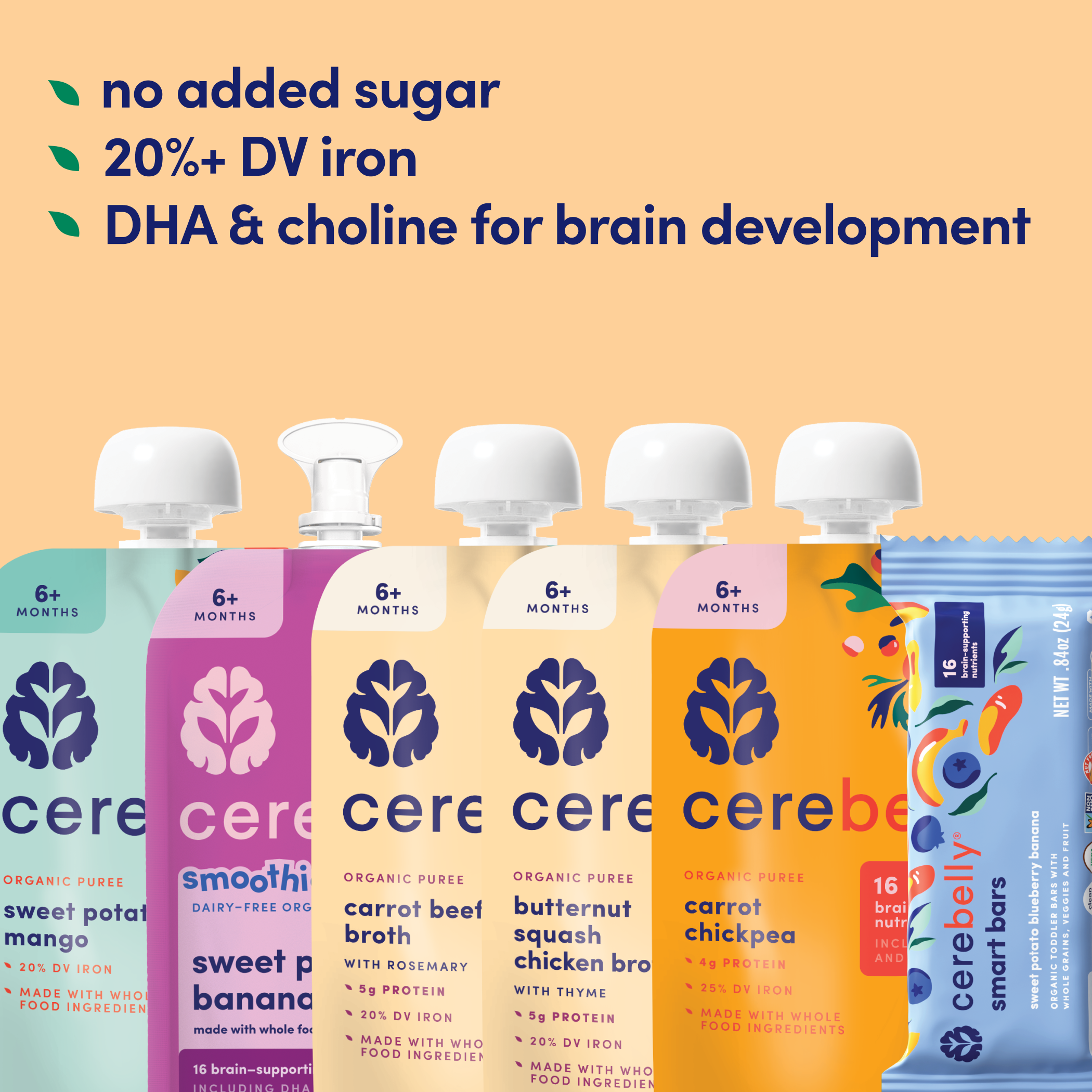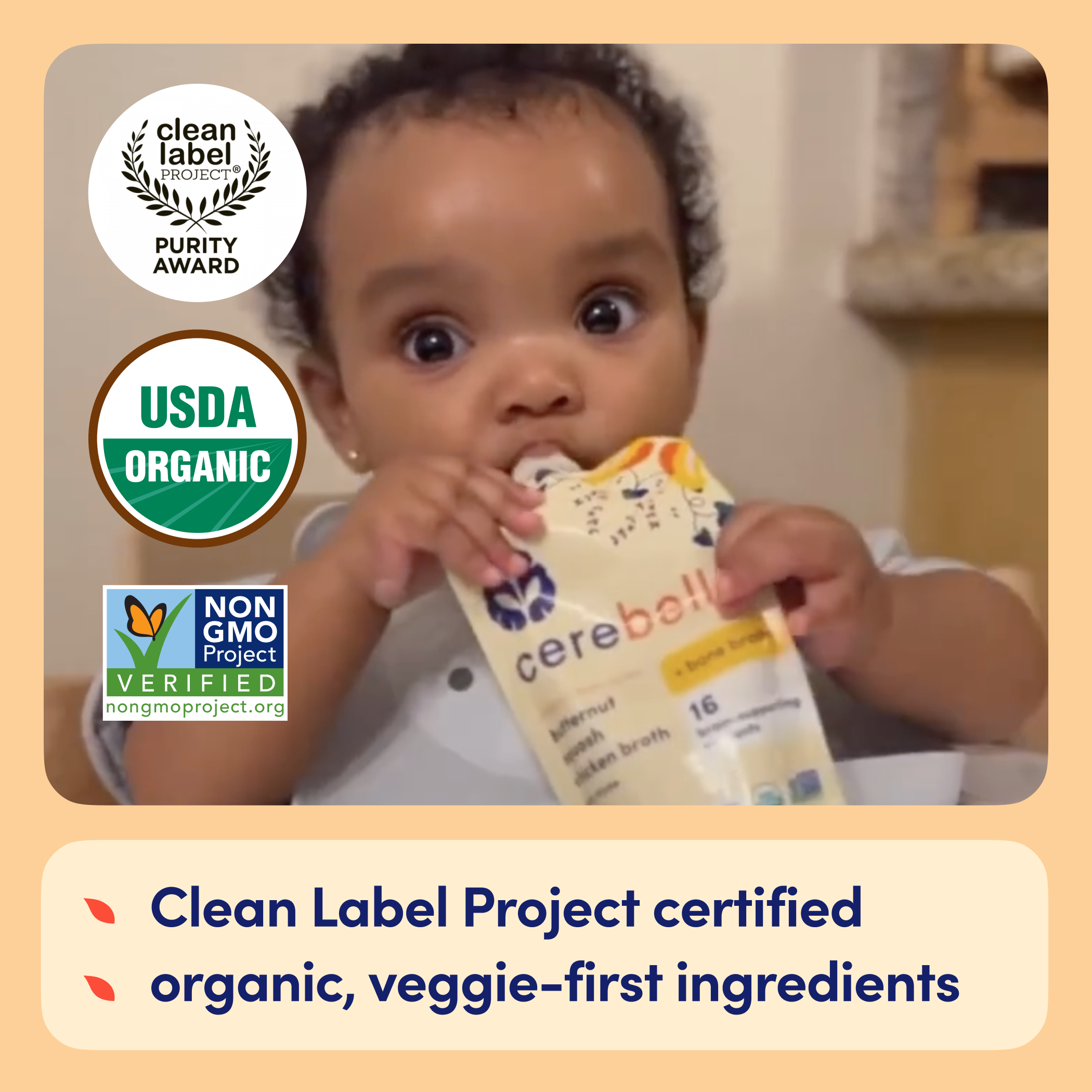 *Among competing baby food pouches with similar ingredients as of April 2024. Normalized per 113 grams.